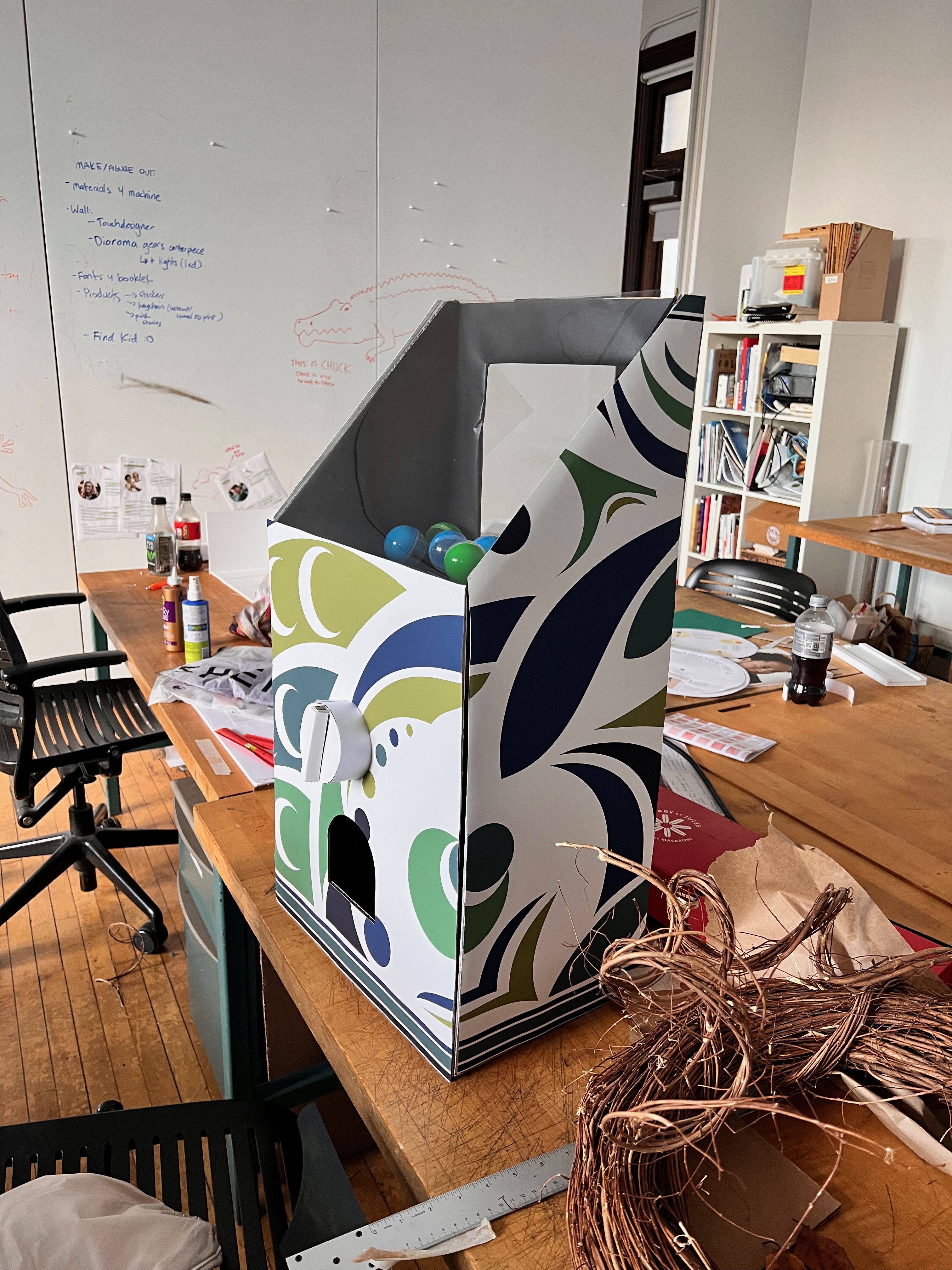 To fully materialize all the scattered experience we envisioned we quickly started our physical prototyping and construction works. Using the resources from around the school of design, we employed a range of tool including the laser cutter, the 3d printer, arduino pieces, and touchdesigner.