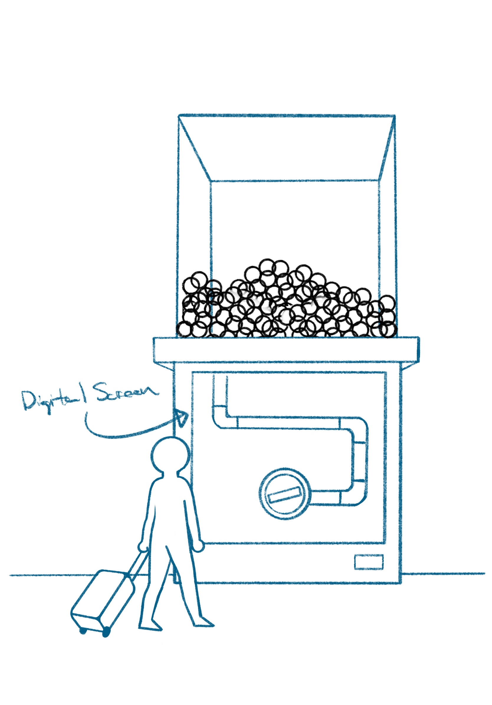 As we began to brainstorm solutions to address the physical, emotional, and intellectual needs of overnight travellers we started sketching storyboards and illustrations to tackle the problems. Examples of ideas we came up with range from personal sleeping pods to the installation of giant vending machines to the integration of RFID tags around the airport.